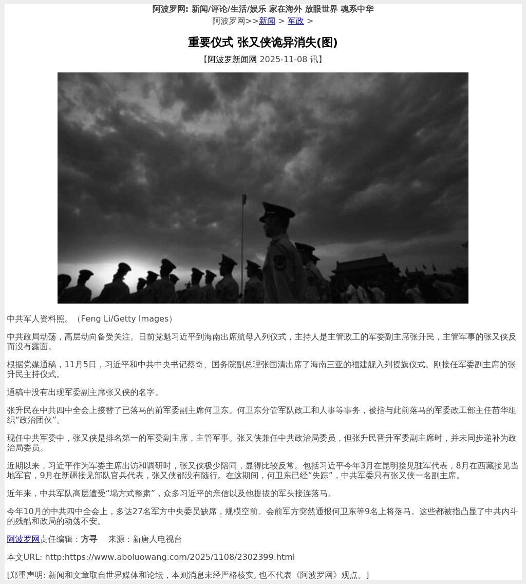 中共政局動盪,高層動向備受關注。日前黨魁習近平到海南出席航母入列儀式,主持人是主管政工的軍委副主席張升民,主管軍事的張又俠反而沒有露面。