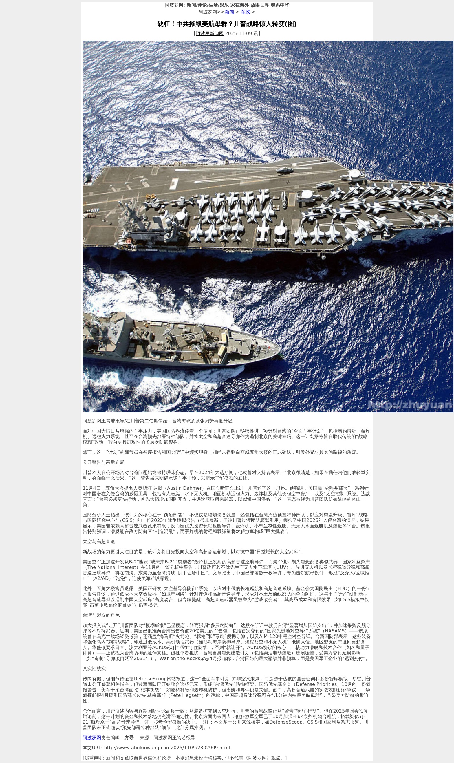 傳聞有據,但細節待證據DefenseScoop網站報導,這一「全面軍事計劃」並非空穴來風,而是源於達默的國會證詞和多份智庫模擬。儘管川普尚未公開簽署相關指令,但過渡團隊已開始整合這些元素,形成「台灣優先」防禦框架。國防優先基金會(Defense Priorities)10月的一份簡報警告,美軍干預台灣面臨「根本挑戰」,如燃料補給和轟炸機防護,但潛艇和飛彈仍是關鍵。然而,高超音速武器的實戰效能仍存爭議——華盛頓郵報4月援引國防部長皮特·赫格塞斯(Pete Hegseth)的話稱,中國高超音速飛彈可在「幾分鐘內摧毀美航母群」,凸顯美方防禦的緊迫性。