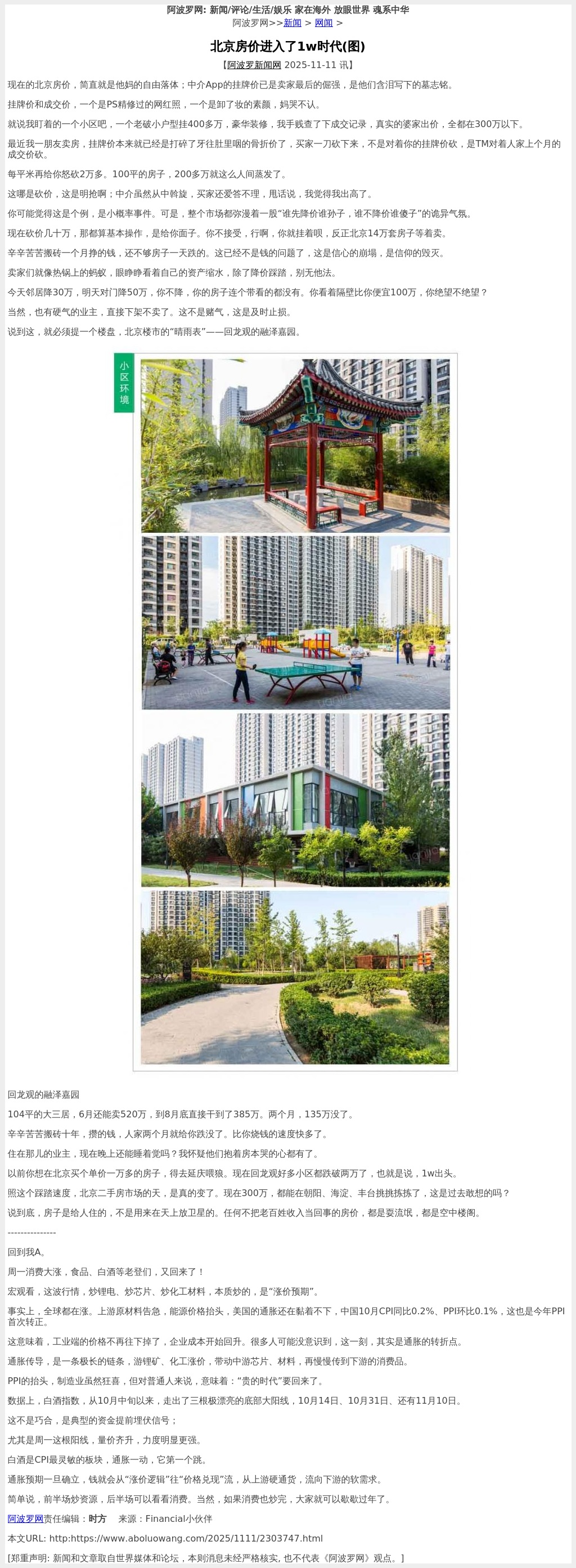 以前你想在北京買個單價一萬多的房子,得去延慶餵狼。現在回龍觀好多小區都跌破兩萬了,也就是說,1w出頭。