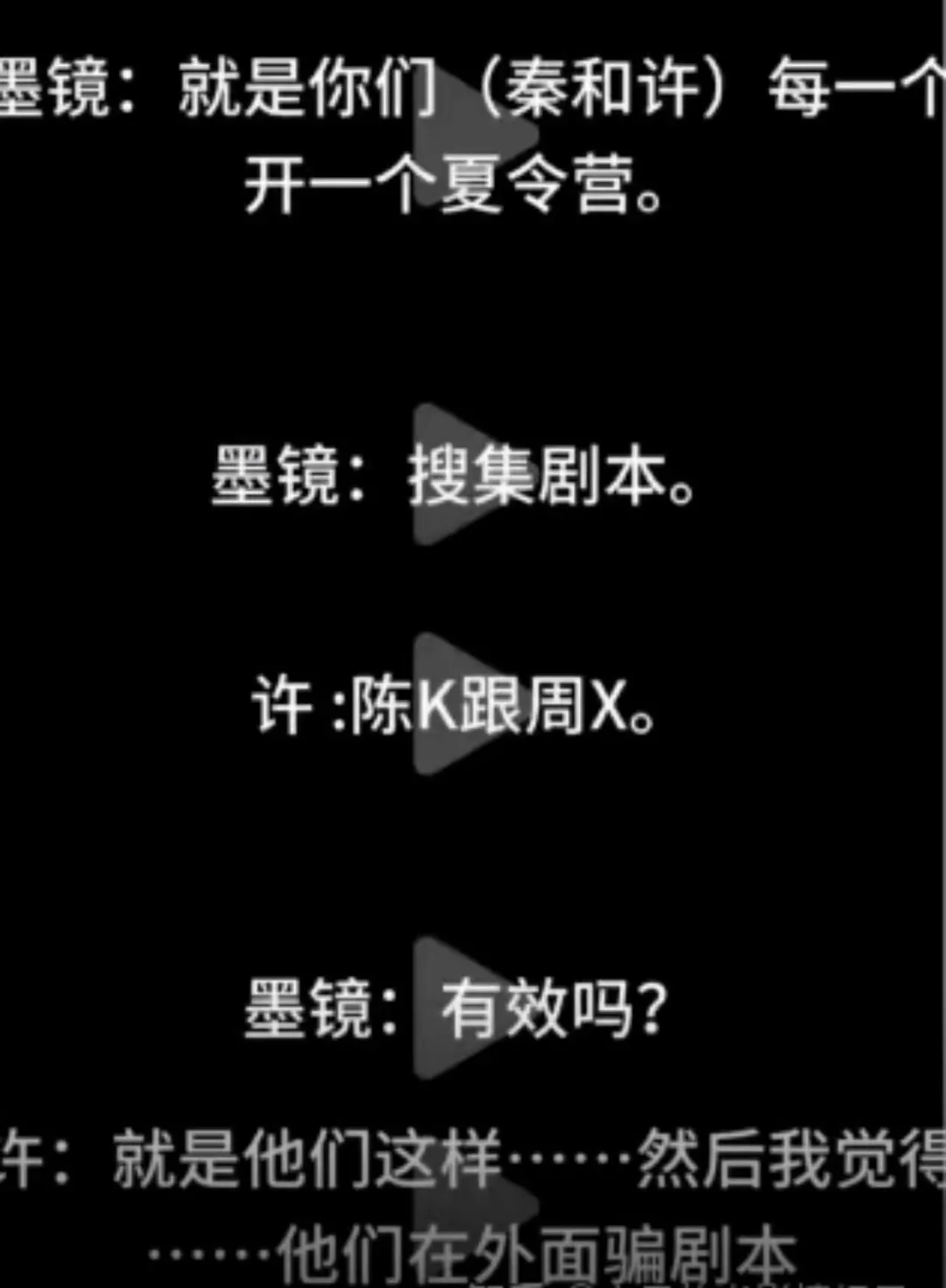 錄音里,王導說,「你們(指秦W、許SY),每一個,開一個夏令營,搜集劇本。」