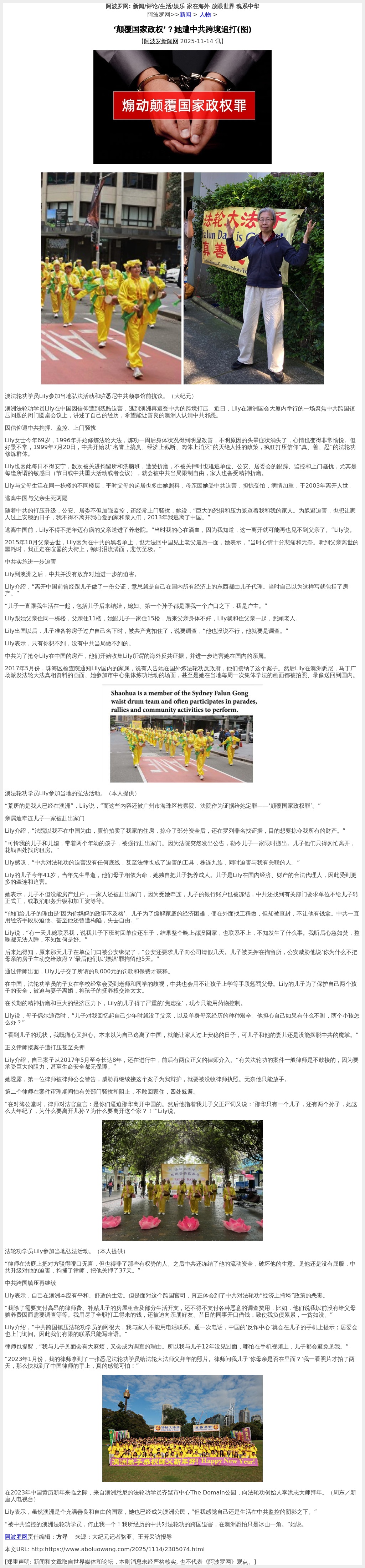 Lily到澳洲之後,中共並沒有放棄對她進一步的迫害。