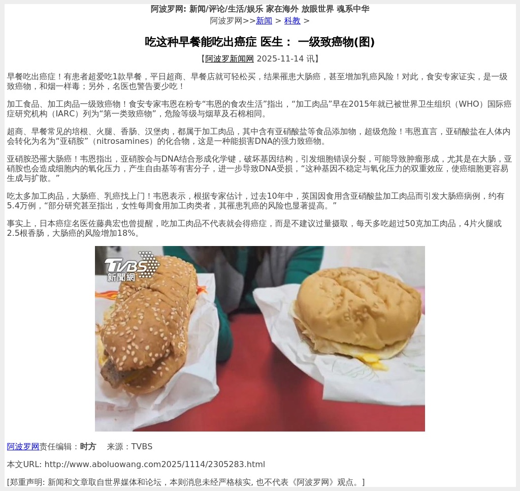 早餐吃出癌症!有患者超愛吃1款早餐,平日超商、早餐店就可輕鬆買,結果罹患大腸癌,甚至增加乳癌風險!對此,食安專家證實,是一級致癌物,和煙一樣毒;另外,名醫也警告要少吃!