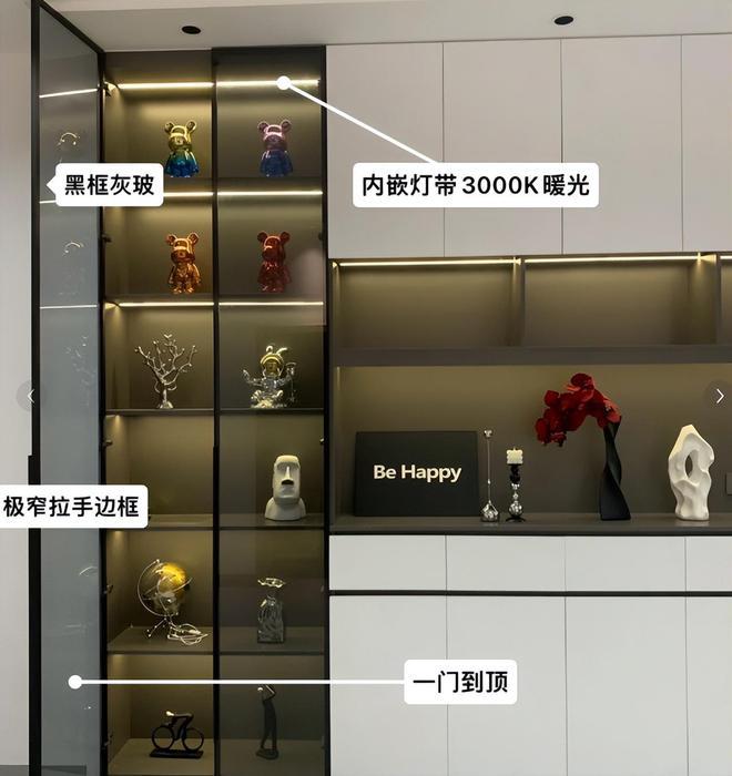 網上博主都說,普通開放式的柜子很容易藏灰,不如去裝玻璃櫃門,透明感好,還更有質感。