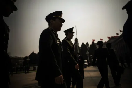 2018年3月10日,中共部隊的代表抵達北京人民大會堂,參加中共政協會議第三次全體會議。(Fred Dufour/AFP via Getty Images)