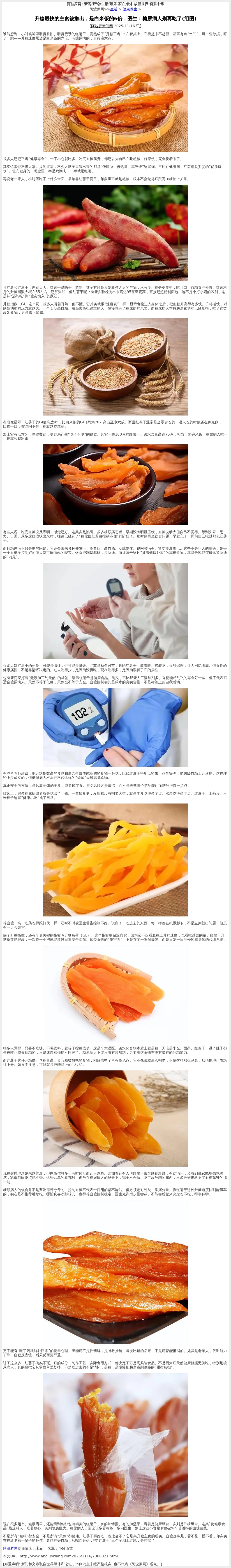 講了這麼多,紅薯干確實不冤。它的成分、製作工藝、實際食用方式,都決定了它是高風險食品。不是因為它天然健康就能無腦吃,特別是糖尿病人,真的要把它從零食單里劃掉。不然吃進去的不是情懷,是糖,是慢慢把胰島逼到絕路的「甜蜜負擔」。